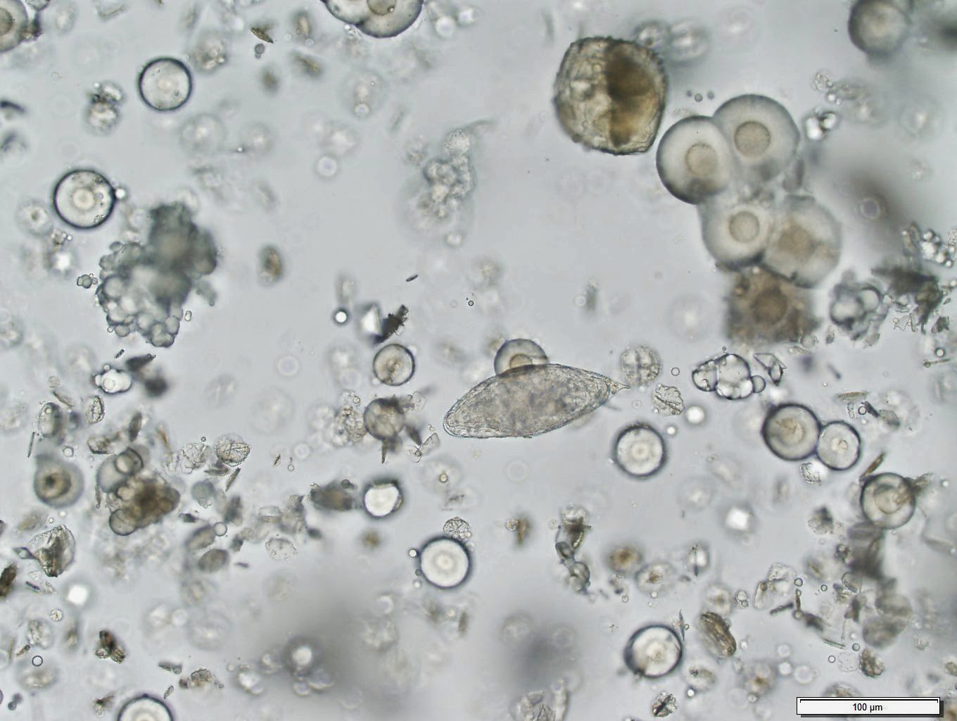 Oh yes, the centrally located spine is characteristic of Schistosoma haematobium ova.